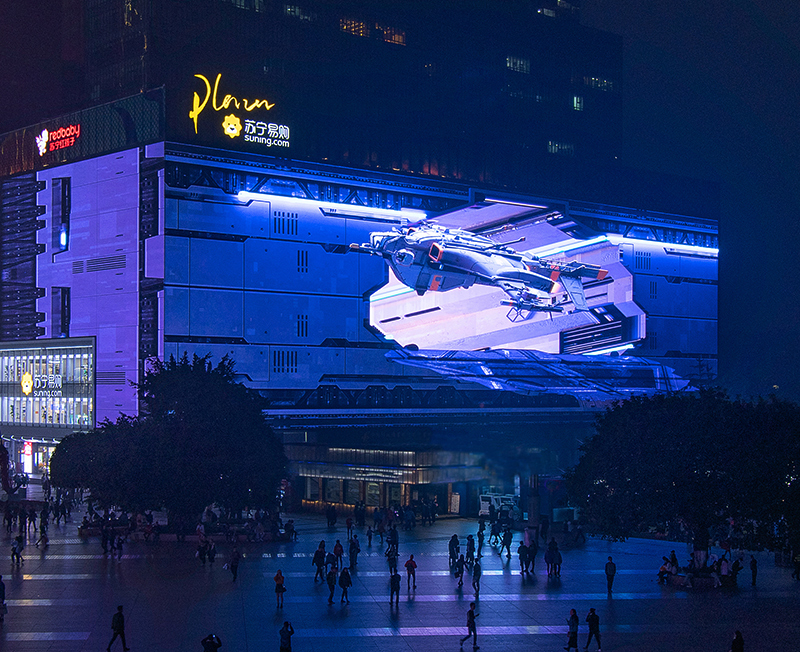 1.成都太古里裸眼3D案例,如科幻世界的飛船就在眼前,讓成都太古里商圈的巨大屏幕火爆全網。去年黃金國慶假期,吸引了全國各地各地朋友前來拍照打卡。