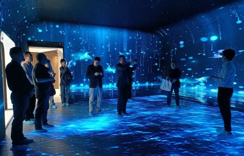 調(diào)研伊始,在利亞德智慧顯示相關(guān)負(fù)責(zé)人的陪同下,來訪嘉賓一行參觀了利亞德南方總部展廳,體驗(yàn)智能顯示、文旅展演、VR互動(dòng)、全息劇場、AR沉浸式全景仿真系統(tǒng)等多個(gè)應(yīng)用場景,沉浸式感受科技的魅力。