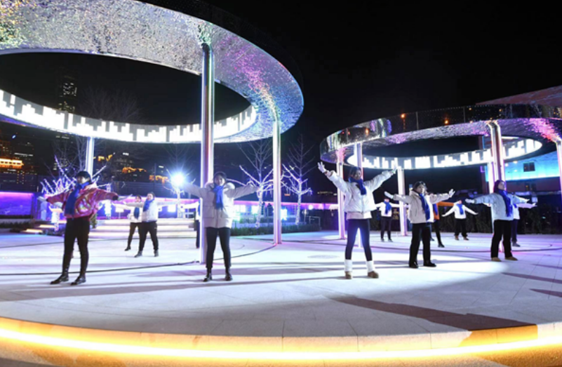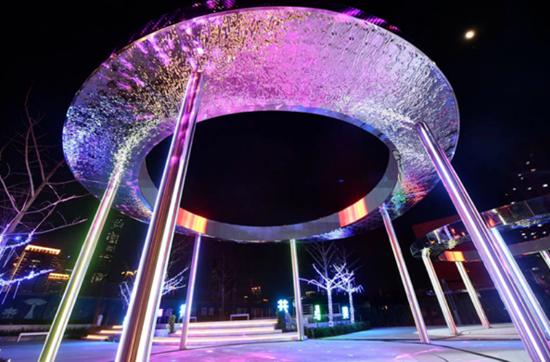 “雙井之光”音樂(lè)噴泉,將元宇宙元素與“雙井”兩口井的歷史名稱(chēng)完美融合,以虛擬投影成像技術(shù),呈現(xiàn)出兩口巨大的“井”的意象;圓形的“井”口內(nèi)壁是由利亞德打造的LED互動(dòng)屏幕,畫(huà)面顏色鮮艷,圖像效果逼真,燈光與音樂(lè)同時(shí)互動(dòng),LED屏幕畫(huà)面不斷流轉(zhuǎn),讓人沉浸式“感受”到四季更替中的雙井美好時(shí)光。雙井之光東側(cè)的“雙井之窗”,是展示窗口,為市民提供豐富的休閑、娛樂(lè)、健身等互動(dòng)設(shè)施。28米長(zhǎng)的跑道旁設(shè)有可感應(yīng)的數(shù)字LED互動(dòng)顯示屏,融合互動(dòng)、放映、展示等功能。該顯示屏是利亞德具有超高刷新,高亮度以及高清顯示效果的創(chuàng)意產(chǎn)品,同時(shí)屏幕具備軍工級(jí)全防護(hù)、防水、防潮、防潑濺,適應(yīng)室外復(fù)雜的運(yùn)行環(huán)境。