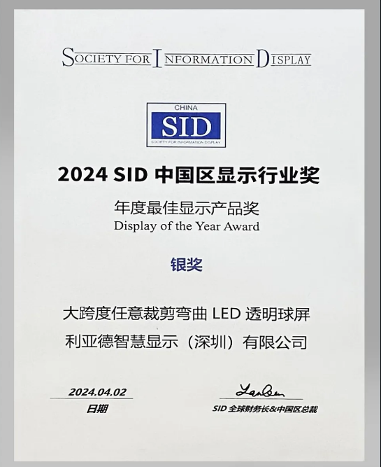 SID大獎,作為全球顯示技術(shù)領(lǐng)域的權(quán)威獎項,匯聚了全球頂尖的設(shè)計理念和技術(shù)成果。每一屆的評選都代表著行業(yè)內(nèi)的最高水準(zhǔn),獲獎產(chǎn)品不僅展示了技術(shù)的前沿性,更是藝術(shù)與科技完美結(jié)合的典范。銀獎的獲得,無疑是利亞德在LED顯示技術(shù)領(lǐng)域的一次里程碑式飛躍,標(biāo)志著我們在透明顯示技術(shù)上的突破已得到國際同行的廣泛認(rèn)同。